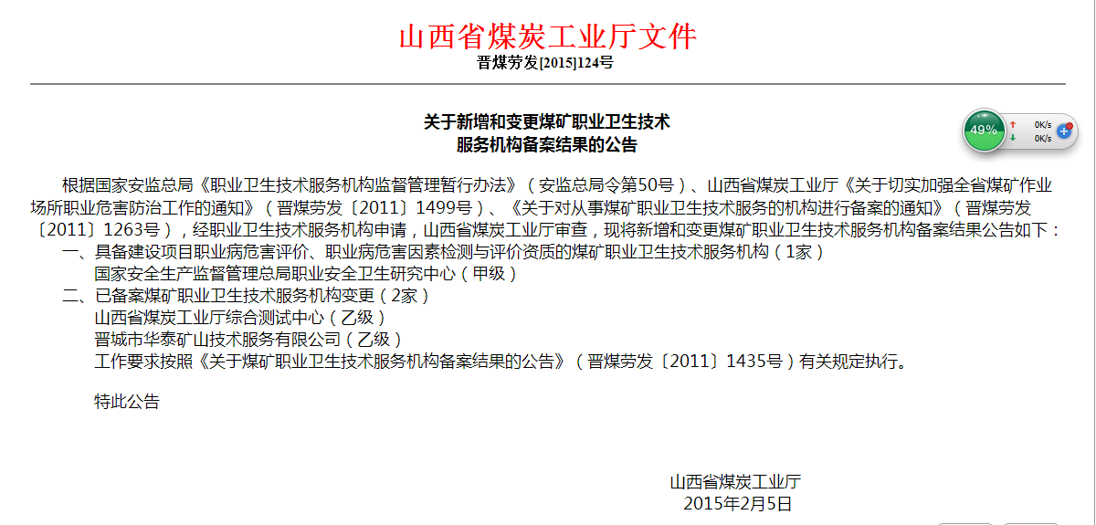 晉城國投華泰科技有限公司(以下簡稱華泰公司)是一家經(jīng)營性國有企業(yè),注冊資金1000.2萬元(由晉城市華泰礦山技術服務有限公司和晉城澤泰安全技術服務有限公司合并整合組建,國投全資)。公司持有山西省衛(wèi)生健康委員會頒發(fā)的《職業(yè)衛(wèi)生技術服務資質(zhì)證書》、山西省應急管理局頒發(fā)的《安全評價機構資質(zhì)證書》和山西省市場監(jiān)督管理局頒發(fā)的《檢驗檢測機構資質(zhì)認定證書》等資質(zhì),設施設備、能力、資質(zhì)配套齊全。...【詳細信息】